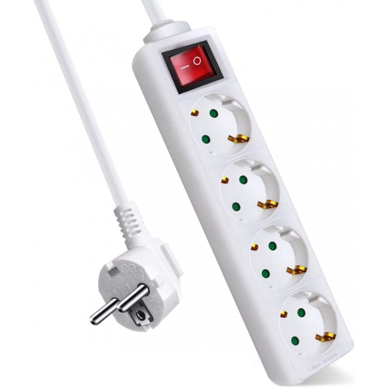 Regleta de 4 tomas, con proteccion en el interruptor y protecion de niños, diametro del cable 1.5mm²/H05VV-F3G
