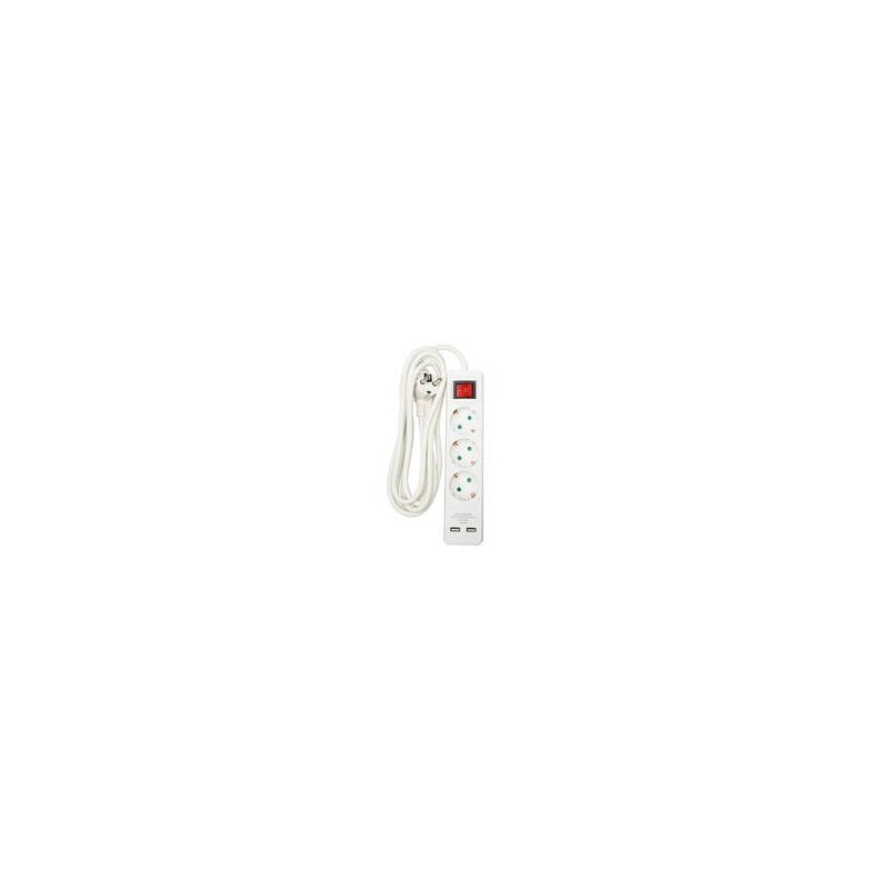 REGLETA 3 TOMAS + 2 USB-A 3 METROS 3X1,5mm² INTERRUPTOR CON PROTECCION