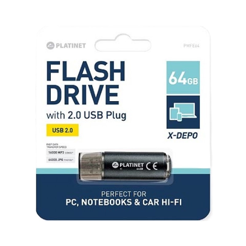 - Modelo: PMFE64B - Marca: Platinet - Color: Negro - Interfaz: USB 2.0 - Forma: Rectangular - Capacidad: 64Gb - Conectores: USB - Sistemas compatibles: Windows 8, 10, Vista Home Basic / Home Premium / Business / Enterprise / Ultimate / Starter, Windows XP Professional / Home Edition, Windows 2000 Professional, Windows Me, Mac OS10.1 ~ 10.4.7, Linux con el kernel 2.4 - Dimensiones: - EMBALAJE: - Caja/blíster (LaxAnxAl):9x1x13,5cm - Peso con caja:18,85g - EAN: 5907595421171* El contenido de la caja variará según el modelo.